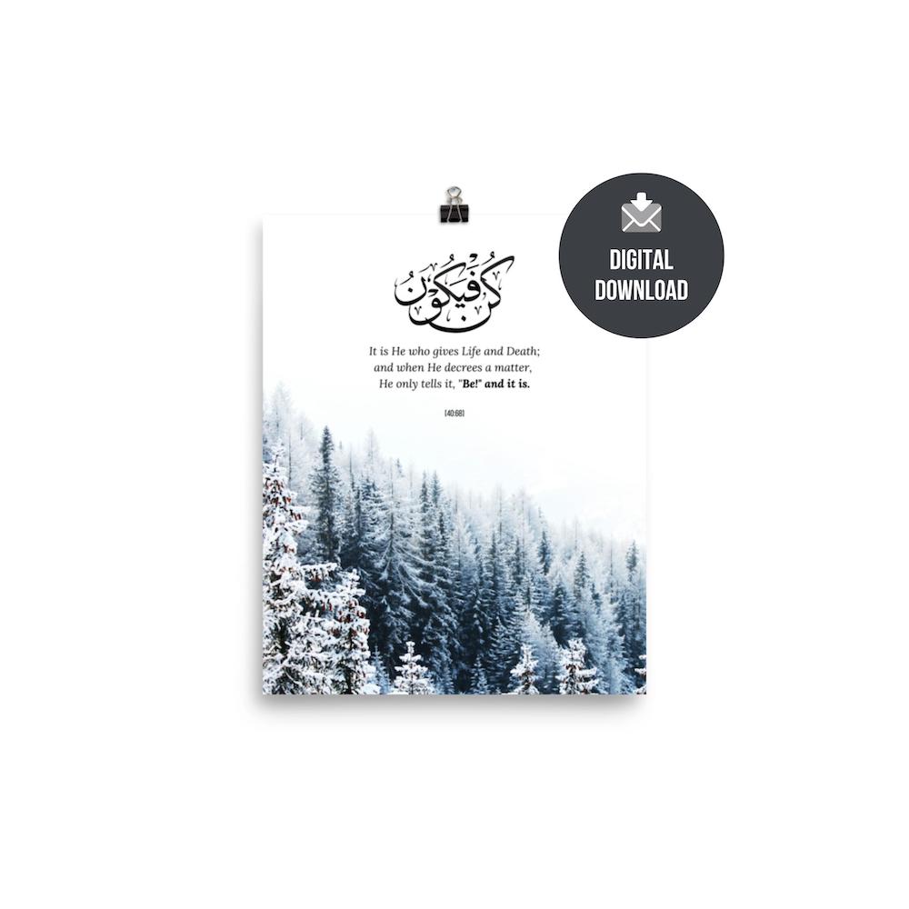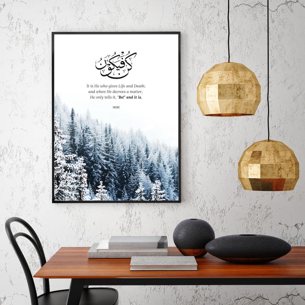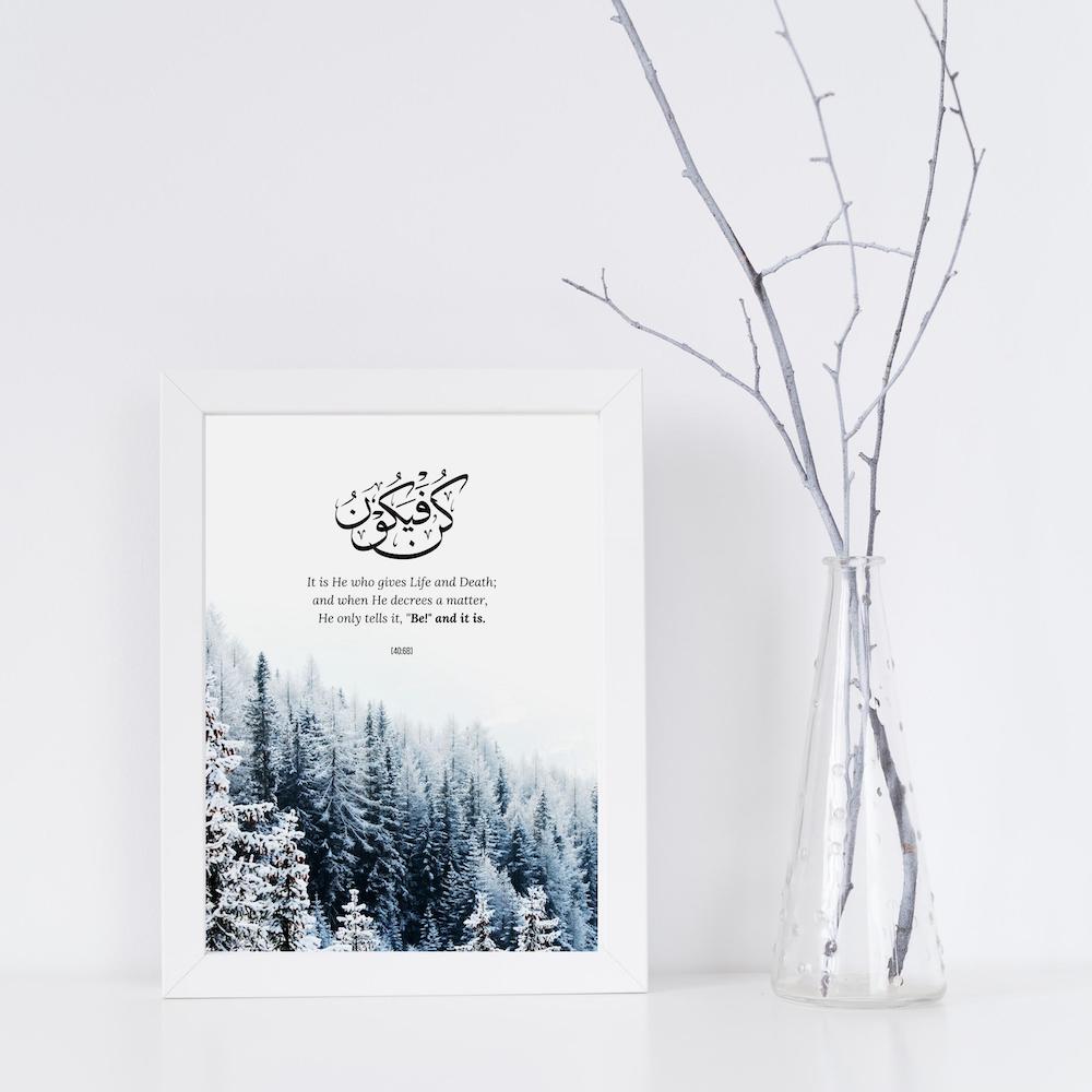 Carry a powerful reminder of faith and divine possibility with our “Kun Faya Kun” print. Meaning “Be, and it is,” this timeless phrase inspires trust, hope, and unwavering belief in Allah’s plan. Elegant and meaningful, it’s a beautiful addition to any space—serving as a daily reminder that what is meant for you will always find its way.